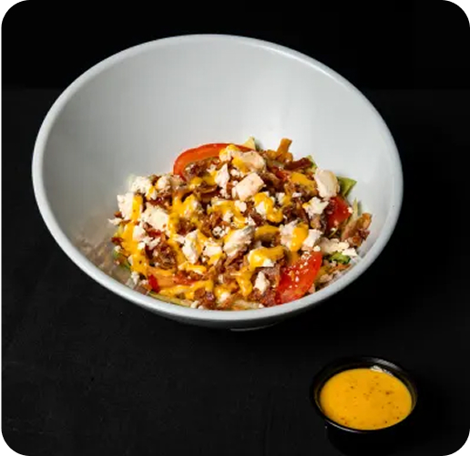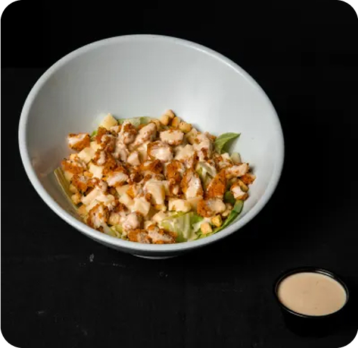 Lechuga fresca, pollo, queso ibérico, picatostes y salsa césar.